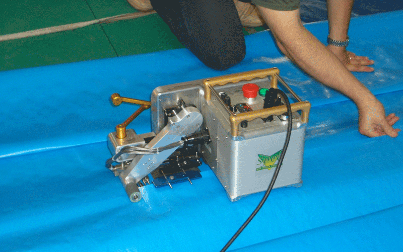 SPEC Basismaschine beim Schweissen von Schwimmbadfolien.