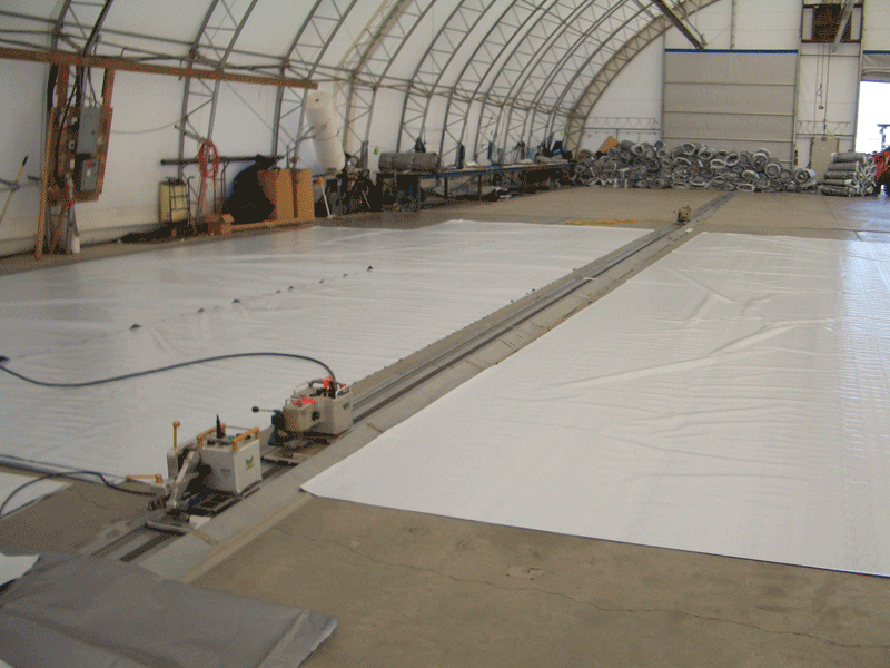 SPEC und TRIAD im Einsatz mit Schienensystem in der Zeltplanenfertigung